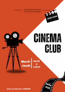 Au retour des vacances d’automne, le collège proposera un ciné club animé par M. Iannone, professeur de Français.